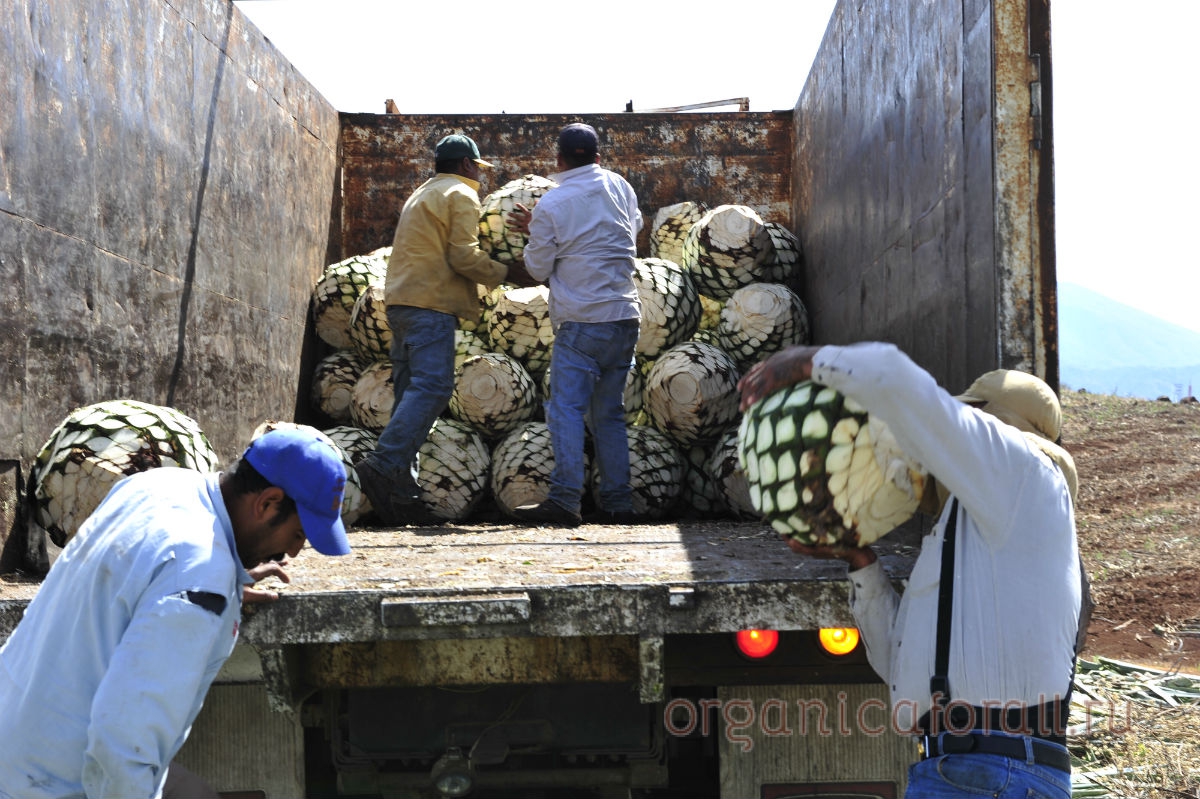 Через 6–7 лет агава вырастает до 1,8–2,4 м, а содержание углеводов в сердцевине — пинье (от исп. piña) — достигает пиковых значений. Значит, наступило время сбора урожая. Уборка агавы — тяжелый ручной процесс, который под силу только опытным мексиканским рабочим — химадорам (jimador).